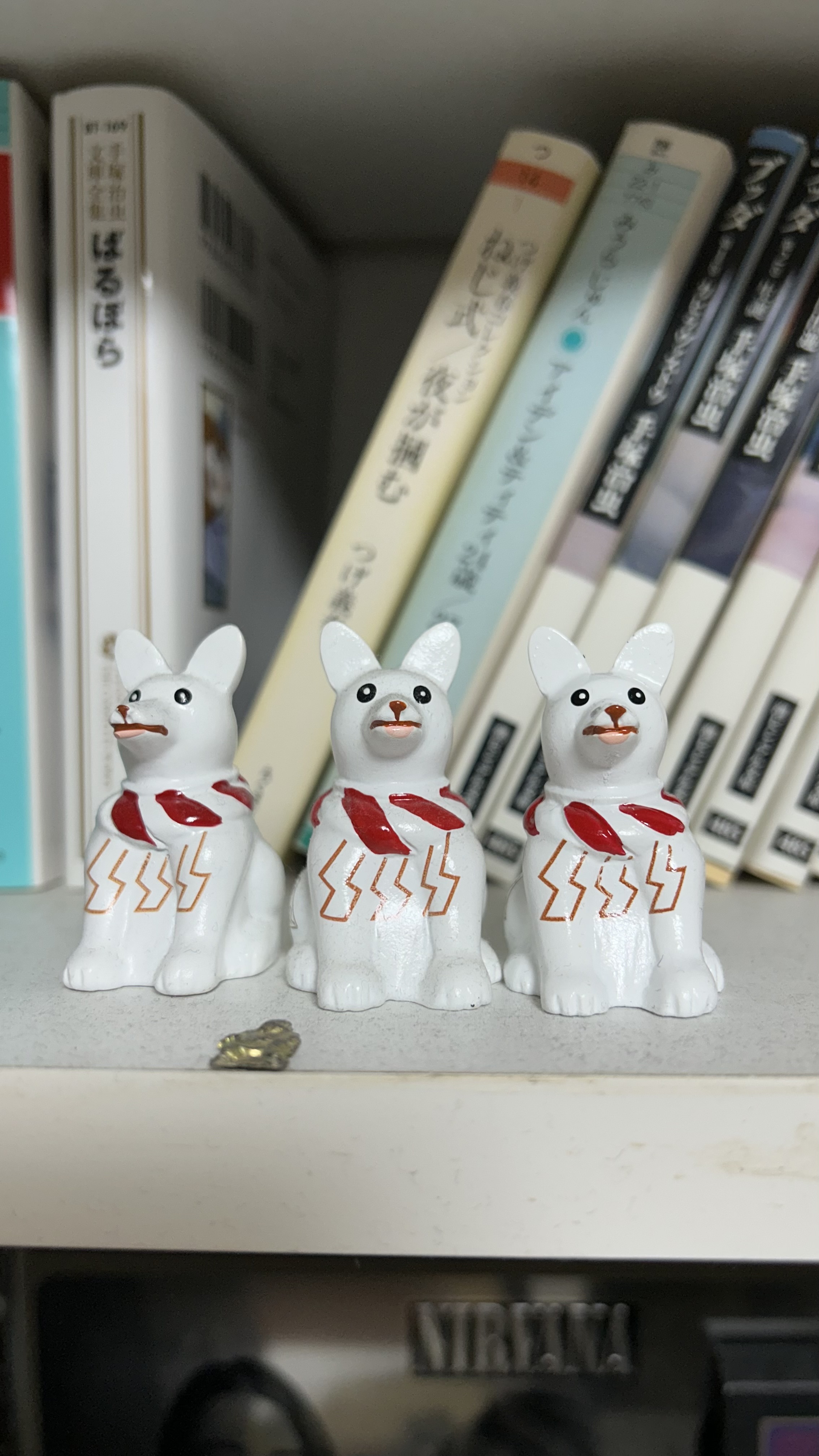 犬のフィギュアの中におみくじが入ってて、最近はフィギュアも集めて並べてみたり。